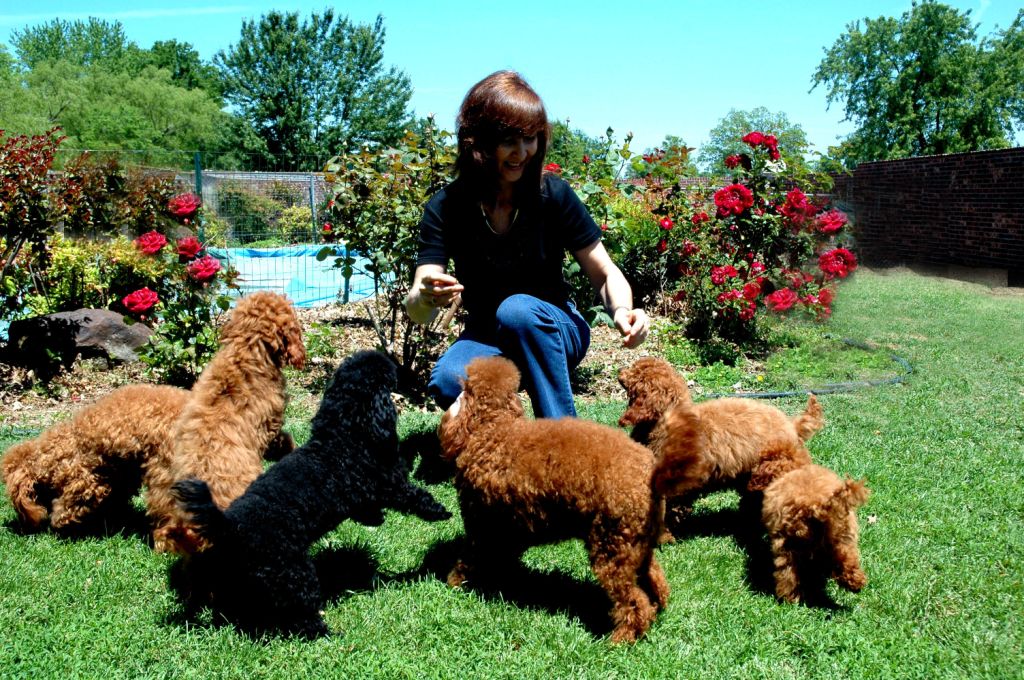 Dear Henny, It was just last fall with Thanksgiving quickly approaching when our little boy, Andy, age 12 became extremely ill. We had Andy since he was a puppy and he had enjoyed overall excellent health, other than the cataracts, some hearing loss and the general things that go along with aging. After several tests and trips to our Veterinarian, it was determined that Andy most likely had some form of intestinal or stomach cancer. Not wanting him to undergo several surgeries or suffer any longer, we made the very difficult decision to have him put down. This loss was very devastating to our Family. Andy was our 4th poodle in our almost 35 years of marriage and was very special to us. My job requires extensive travel and Andy was very much a companion to Beverley during my absences. At first, we were going to go without a dog, but after some discussion we made the decision to start looking for a poodle breeder that specialized in red miniature poodles. Of our previous poodles, we owned a silver, two apricots, and Andy who was our first red and we fell in love with the deep rich color. We reside in the DFW area and so I began my search, but really did not see what we were looking for until I found your website. After my initial phone call to you and learning the way you handle your dogs, your wisdom and love for the poodle breed, we both felt as though God led us to you. We both knew that we would be getting our next little addition from you and our name went on the list for a baby boy. All along the way, you answered questions and gave us hope that we would have a complete Family again. As I read trough the testimonials on your website, I knew others felt the same way that my wife and I felt about how special you are and how you handle your poodles. Then on Sunday, right after church we received the news that Lola had given birth to two baby girls and 2 hours later a little red boy poodle. We were so excited! All during his nursing and growing from week to week, you kept us updated with pictures, videos and also took several questions throughout the process. We made the 4 hour drive up to Oklahoma and picked up our little boy at 7 weeks old. Beverley had picked out the name Noah and given him the middle name of Andrew in honor of Andy. We were so excited to see our new addition and get to meet you in person. We witnessed the loving and wonderful environment you provide for your poodles. I was such a pleasure to meet you and your "group" as you call them, all beautiful dogs. Noah Andrew had his first visit to our veterinarian at 12 weeks and already weighs 6.5 lbs. The Vet gave him a thorough examination and let us know we had a very healthy and handsome little boy. He is doing wonderful and keeping us on our toes as all puppies do. He sleeps with us at night and most importantly healed our broken hearts. We feel very blessed that God led us to you and we are very thankful that you do what you do. We will always keep you updated as our little Noah Andrew progresses in age and how we all are doing as Family. He is a very loving and sweet little dog. Thanks for everything Henny.